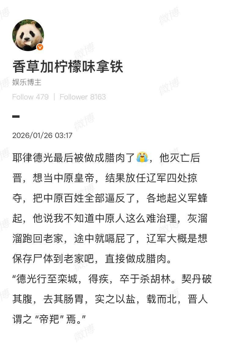 新旧《五代史》、《资治通鉴》和《太平广记》都记载过辽太宗耶律德光死后被腌制成“帝羓”,有人说这是契丹贵族的一种风尚。
